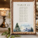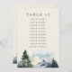 Cartões Sentados de Casamento com número de tabela editável e lista de nomes de convidados em verde-azeitona em creme. Este design de aquarela representa uma cena serena de montanha com pinheiros majestosos na frente. Procure na minha coleção Country Lake Wedding para coordenar convites, artigos de papelaria, cartazes e decoração de casamento. Envie-me uma mensagem se precisar que eu acrescente modelos adicionais.
