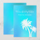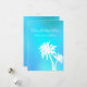 Cartões de Natal planos em tons de azul aqua tropical com silhuetas brancas de palmeiras e texto. Personalize um cumprimento e adicione uma assinatura a cartões de Natal simples e únicos com tema tropical. O verso é azul.
