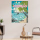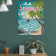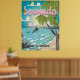 Cartoon de poster das Bermudas. Visite a Ilha das Bermudas com esta poster de férias de praia.