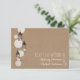 Um rsvp de casamento com ilustração de um grupo de lanternas e lanternas de jardim cheias de arranjos florais. O fundo na frente é o estoque de papelão inspirado. Personalize o texto na frente e atrás.