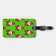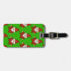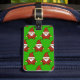 Etiquetas de bagagem personalizadas com gnomos bonitos de estilo de desenho animado. Versão do padrão de xadrez vermelho e verde. Design de Natal para as suas férias. Ideia para adultos e crianças.