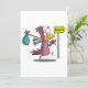 Um pássaro estilo cartoon com saco e parado por um cartaz indo para sul. Este design parece realmente eficaz nestes Convites