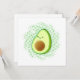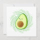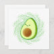 Um estilo de desenho animado, abacado, com efeito angustiado aplicado ao fundo. Dar ideia para adultos e crianças que amam abacates e comidas saudáveis. O cartão está vazio atrás para mensagens escritas à mão.