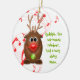 O texto deste ornamento de renas de Natal é fácil de personalizar. O festivo design de renas vermelho, verde e cartoon faz disso um adorável e tradicional ornamento de Natal. Para alterar o texto, use as opções de personalização. Para alterações mais abrangentes no ornamento, incluindo a alteração da fonte, do tamanho da fonte, da cor da fonte, do posicionamento do texto, use a opção personalizar.