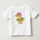 Uma camiseta divertida e colorida com patinho amarelo lúcido vestindo um boné de natação floral rosa, óculos verdes e um tubo interno listrado. O pato de olhos largos e surpreso adiciona um toque caprichoso, perfeito para as crianças vestirem durante o verão, dias de piscina ou brincadeiras casuais. Linhas escuras e cores brilhantes e cartoonizadas tornam esta camiseta atraente e agradável para as crianças, ideal como presente ou parte de um guarda-roupa de verão.