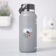 Cartoon de um filhote brincando na praia A água azul, a praia do ouro e o desenho de um filhote preto e branco são as melhores escolhas para amantes de cachorros