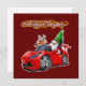 Cartoon cumprimentando cartão de Natal com Papais noeis legal no supercarro