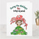 "Durante os feriados, você me deixa louco." Este cartoon bonitinho de cana doce senta-se na cabeça de uma menina com um corpo de árvore de Natal com pequenas luzes de peixe. Dentro à esquerda: Um Dentro de peixe de desenho animado muito bonito e colorido, a vermelho, diz: "Então eu queria te pescar um Natal muito Feliz" (você pode personalizar o dentro de texto)
