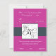 Charcarbonus Fuchsia Pink Monograma Design RSVP de Casamento por Elke Clarke ©2010. Mais designs disponíveis em WhiteWhimsicalWeddings.com e WhiteWhimsicalWeddings.blogspot.com. Esta é a vista de trás. É ligeiramente menos brilhante que a frente. Todas as cores, fontes e gráficos podem ser personalizadas com suas cores, espaçamento e opções de fontes. Isto não é um modelo, mas não deixe que isso o intimide. Zazzle tem um menu muito simples de usar para ajudá-lo e você pode arrastar, soltar, cortar, colar etc. Isso lhe permite mais flexibilidade ao criar seu próprio papel de carta exclusivo. Basta clicar na opção "Personalizar" e seguir as instruções intuitivas. Personalize com seu monograma, nomes e informações de casamento. Além disso, escolha entre uma variedade de fontes e belos papéis para tornar sua papelaria de casamento FABULOSA! Se precisar de ajuda, entre em contato comigo diretamente pelo link de e-mail na minha página inicial que você pode acessar clicando no nome da galeria sob o produto.