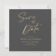 Elegante Carvões Moderno Salvem A Data Invitation é projetada para aqueles que movem elegância e simplicidade! Anuncie seu evento em estilo! Tendy minimalista estilo quadrado simples para eventos de casamento elegantes. Apresenta um roteiro elegante com "Salvar a Data" dizendo em ouro. Combine com outros itens da coleção de convites de Casamento de Script Elegante Minimalista. ©EpicSparkle