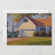 Lar com Árvores Verdes Amarelas Laranja no estilo de pintura Hopperesque de uma Rua Louis, Missouri, em luz do sol brilhante com carro e árvores lançando sombras. Design exclusivamente de e original pintura impressionista a óleo pelo pintor de arte Daniel Fishback.