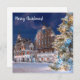 Árvore de Natal iluminada à noite. Praça da Prefeitura com Casa dos Negros e Árvore de Natal no inverno, antiga cidade de Riga, Letónia. Cartão postal de Natal de Riga.