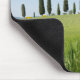 Mousepad com uma casa da quinta com árvores de cipreste e grões de ondulação do trigo no primavera no vale do d'Orcia de Val em Toscânia, Italia.