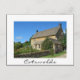 Cartão postal de uma cabana de pedra de algodão, de cor inglesa, com um jardim floral e uma bandeira britânica em Cotswolds, Reino Unido com uma fronteira branca e o texto: "Cotswolds".