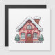 Uma encantadora casa de pão de mel rosa com decorações em forma de coração, telhado coberto de neve e uma chaminé.