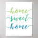 Impressão poster verde e azul-lar, doce lar, apresenta tipografia escrita manual moderna em verde legal, aqua e aquarelas azuis. Impressão perfeito para a casa.