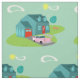 Esta casa suburbana retro penteou características do teste padrão do tecido de algodão uma casa americana típica em uma vizinhança americana típica, cerca de 1950. Uma casa da cerceta com um telhado do azul de pavão, e as janelas de turquesa são deslocadas perfeitamente por uma porta vermelha vibrante da porta da rua e da garagem. Um rosa clássico, carro convertível finned dos anos 50 é estacionado na entrada de automóveis pitoresca. Os flamingos Kitschy, plásticos, cor-de-rosa olham direitos em casa na forma do Bumerangue da grama verde recentemente segada que descansa em um fundo do jade. O gramado manicured é ajardinado com árvores lunáticas. O feijão-roxo deu forma a nuvens e um sunburst amarelo de um sol deixou-o sabê-lo é apenas um outro dia glorioso no subúrbio moderno do meio século.