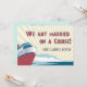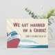 Casou-se numa nave de cruzeiro? Poste o convite da recepção de casamento com seu texto personalizado do outro lado. Se você teve um casamento de férias de cruzeiro e está lançando a festa de casamento de celebração de casamentos mais tarde, personalize este convite personalizado para o seu evento. A design é modelada após as posters viagens vintage da era Art Deco e mostra um navio de cruzeiro com raios solares no oceano.