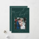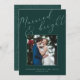 Cartões com fotos elegantes para recém-casados apresentam uma foto de casamento quadrado favorita em um rico fundo verde da floresta, com "casado e brilhante" em um roteiro de caligrafia tonal. Personalize com seus nomes ou saudação personalizada abaixo. Perfeito por compartilhar uma foto de casamento para seu primeiro Natal casado.