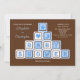 Um chá de fraldas de código de casal no seu futuro para um casal esperando um bebê? Se for, este convite pode ser correto para si. Este convite para chá de fraldas de código de casais apresenta blocos de bebês empilhados em azul e branco com dentro design azul e blocos que soletram as palavras "CHÁ DE FRALDAS". Os blocos e a formulação do convite aparecem num pano de fundo castanho de chocolate. O nome da mãe e do pai a serem exibidos em azul com todos os outros detalhes do convite que aparecem em branco. Uma forma excelente de convidar casais para um chá de fraldas de código. Direitos autorais