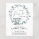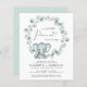 Casais neutro em relação ao gênero, amigos do orçamento, convite para borrifar bebê com "A Sweet Little Peanut Is On Your Way" numa mistura de tipografia moderna e um roteiro de na moda com um inchaço cardíaco, e uma aquarela de um lindo elefante verde de menta pastel em uma coroa de verde-sábio eucalipto verde. Adicione os nomes dos pais a serem e os detalhes do borrifo em uma simples tipografia.
