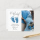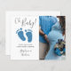 Casais de Fotografia Orçamentária Convite para Chá de fraldas Azul. Envie estes convites para chuveiros de bebês de casal para a família e amigos. Eles são decorados com tipografia moderna e pés de bebê bonitinhos com brilho azul. Adicione sua própria foto, nome e detalhes.