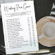 Jogo de Chá de Casais de Calçado de casamento. Jogo simples e divertido envolvendo o casal feliz e seus convidados. O título "Jogo do Calçado de Casamento" destaca-se na caligrafia escrita à mão com elegância casual. Design de minimalista em chic com tipografia a preto e branco sobre fundo branco acabado, com lavagem a aquarela suave e paleta de cor verde suave no reverso. Simples design moderno e elegante para coordenar com muitos temas de chá de casamento. Procure na minha coleção itens correspondentes ou me envie uma mensagem para criar os modelos necessários.
