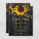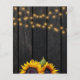 Chá de casamento russo na moda barato casal convite modelo no fundo de madeira marrom-escura apresentando grandes buquês de girassol de ouro amarelo, cordas de luzes cintilantes e um falso roteiro de tipografia de ouro. +++++++++++++++++ Fácil de personalizar com seus detalhes! +++++++++++ O convite é adequado para festas ou churrascos de quintais de jardim de inverno ou outono. +++++++++ LEIA ISTO ANTES DE COMPRAR! Este é um cartão de casamento de barato orçamentário impresso em uma folha de papel (cada folha tem um cartão). +++ Para obter a melhor qualidade de preço, nosso conselho é escolher o tipo de papel Semi-Gloss (é espesso o suficiente para ser usado para papelaria) +++ Se você precisar de envelopes, escolha a OPÇÃO ENVELOPE. ++ Verifique duas vezes todas as informações e a ortografia do seu texto porque você receberá exatamente o que você vê - ninguém mais verificará nada antes de imprimir. +++ Esta placa foi projetada para o tamanho de 4,5" x 5,6". Caso você escolha outro tamanho do cartão e o texto saia da página, tudo precisa ser corrigido antes de adicionar o produto ao carrinho. Por favor, peça ajuda.