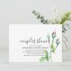 Convite de casais para chuveiro temático de flores em aquarela manuscritas moderno e elegante, em branco com rosas e botões vermelhos, folhas verdes com espaço no verso para detalhes adicionais. Para suprimentos de festa combinando, entre em contato com o designer. Você pode transferir este design para um convite magnético ou outro tamanho, estilo conforme desejado.
