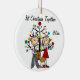 Natal da lembrança cerâmica redonda bonito um ø ornament junto características que uma figura casal da vara se vestiu toda acima, o com uma camisa e laço, ela em um vestido vermelho, com o cão, estando na frente da árvore de Natal. Adicione facilmente seus nomes e o ano em curso para personalizá-lo!