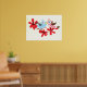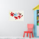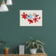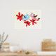 Casal bonito de pássaros, flores vermelhas, poster personalizado, com dois pássaros bonitos, cor-de-rosa e azul, em um galho com flores vermelhas.