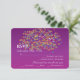 Este cartão de resposta de convite de casamento moderno apresenta letras elegantes em um fundo roxo cassis. O design apresenta uma obra de arte original de uma árvore do arco-íris feita de folhas em forma de coração que seguram dois passarinhos apaixonados. Com as cores do arco-íris da árvore, este cartão de resposta funciona muito bem para casais LGBTQ, casais interessados em cristais e chakras, e ainda será apropriado para qualquer casamento. Complete o seu visual e impressione seus amigos e familiares com outros itens da Elegant Lovebirds Cassis Purple Wedding Collection.