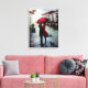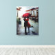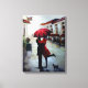 Pintura de canvas de réplica de um casal apaixonado segurando um guarda-chuva vermelho na cidade do Mediterrâneo com um pequeno Terrier escocês