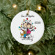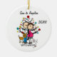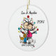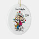 Um ornamento cerâmico bonito, do divertimento que caracterizam uma figura casal expectante da vara, um grande cão marrom, o cão branco pequeno, a árvore do feriado, e o texto que nos lê "estão esperando!" com uma área você pode adicionar seu nomes ou sobrenome e a adição o ano em curso!
