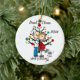 Um ornamento cerâmico redondo bonito do feriado do Natal da lembrança caracteriza uma figura casal expectante e seu gato da vara do animal de estimação na frente de uma árvore de Natal decorada com áreas que você pode personalizar com nomes e o ano em curso! Este ornamento bonito da lembrança do feriado faz um grande presente para que a mamã e o pai deva comemorar um ano especial!