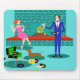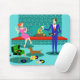 Este casal retro com cão Mousepad olha como uma cena fora de uma comédia romântica. O estilo dos anos 60, características de design minimalistas da arte um casal atrativo que aprecia um nivelamento romântico em casa. A sala sofisticada caracteriza proeminente uma lareira do tijolo do aqua e da cerceta com uma borda vermelha brilhante. Uma bonita, mulher do redhead que veste um brilhante, vestido do rosa é empoleirada na borda. Está apreciando um martini com uma azeitona de flutuação, um fogo rujir, boa música, e a empresa um homem alto, escuro e considerável. O homem está vestindo um terno azul e um laço vermelho. Seu vidro de martini é aumentado para brindar seu companheiro encantador. Em sua outra mão, está guardarando um vinil álbum gravado. Em seus pés, nós vemos um dachshund o mais adorável vestir um colar vermelho. O cão brincalhão do wiener está andando na direcção de um jogador gravado verde com laranja, pés do eixo. No assoalho, há um grupo colorido de divertimento, ecléctico, registros de vinil. Elogios! Está aqui ao nivelamento perfeito em casa.