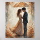 Celebrar a beleza do amor com esta poster encantadora apresentando um casal de pé bem debaixo de um guarda-chuva, cercado por flores de outono e tons de aquarela macia. Este trabalho de arte elegante e sonhador é perfeito para criar uma atmosfera quente e romântica em sua casa.
