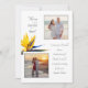 Anúncio de casamento com design de flor exótica de ave do paraíso e dois modelos fotográficos. O texto da cinza no topo é, "Nós amarramos o nó" e pode ser facilmente alterado para "Nós somos casados", "Sr. e Sra.", "Anunciando um casamento" ou a sua escolha de texto que ajustado. Nomes, localização do casamento e outras informações são adicionados na parte inferior direita. Atualize o papel como quiser. Os modelos de fotos quadradas são emoldurados em branco e a orientação paisagem ou retrato funcionará se sua imagem desejada estiver no centro. O reverso é uma cinza sólida.