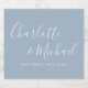 Design de casamento azul empoeirado de assinatura elegante personalizado com nomes de estilo de assinatura e sua data de casamento especial. Projetado por Thisnotme©