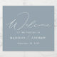 As etiquetas de vinho espumante do casamento modernas, com "Bem-vindo", apresentadas num elegante roteiro de caligrafia branca sobre um fundo azul empoeirado. Personalize as etiquetas de vinho espumante azul empoeirado com seus nomes e data do casamento. As simples etiquetas de vinho espumante de casamento são perfeitas para usar em recepções de casamento, jantadas de ensaio e festas de noivado.
