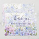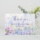 Nosso cartão de agradecimento de casamento azul elegante é uma escolha encantadora para celebrações de primavera ou verão. Belas flores de Clematis azuis derramam sobre um fundo floral gelado. É perfeito para a primavera ou verão. Qualquer tema de casamento de jardim lindo seria perfeito