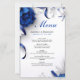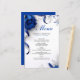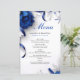 Um layout luxuoso com flores vibrantes azul-marinho, fitas de cetim e delicados acentos florais brancos. Este design elegante e ornamentado é ideal para casamentos formais com uma estética clássica ou glamorosa.