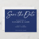 Azul escuro moderno e casamento branco manuscrito Salve o cartão de convite de Data. Este design apresenta uma fonte de estilo de caligrafia grande que você pode alterar sua cor. Você também pode personalizar todos os detalhes e cores neste design Salvar a Data.