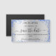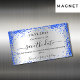 Uma Imã salve a data moderna e elegante para um casamento. Um fundo com aspecto fino de prata decorado com brilho azul real, brilhos. Personalize e adicione uma data e nomes. O texto: Salvar a Data é gravado com um script de estilo com letra de tendência grande.