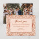 Este casamento boêmico único, obrigado cartas com fotos são modernas e divertidas. As cores creme e laranja enferrujado são personalizáveis.