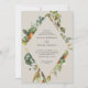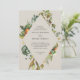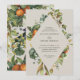 Cartão de casamento floral e folhagem dos citrinos de laranja. Lindas aquarelas florais impressas à mão e texto moderno de roteiro. Moderno na tendência design