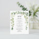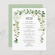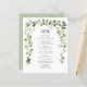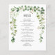 Este cardápio de casamento rústico com na moda apresenta uma delicada cor d'água, eucalipto verde arca. O título e o texto aparecem em duas fontes coordenadoras de cinzas de carvão sans serif. O inverso é verde claro e sólido.