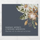 A festa de casamento botânico tropical azul e azul da boêmia moderna e azul tropical e branca favorece a garrafa de vinho. Lindas aquarelas florais impressas à mão e texto moderno de roteiro. Moderno em design de tendência.