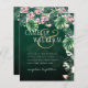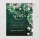 As folhas e flores da ilha tropical Emerald Green, modernas tendências, convidam com campos de modelo de texto de ambos os lados. Os itens de coordenação com este design podem ser encontrados na coleção em anexo, que inclui convites para casamento, rsvp, salvar as datas, sinal de boas-vindas, adesivos, programas, menu, convites de chá de panela, janto de ensaio, convites para o conselho da nuestra, convites orçamentários e muito mais. Este tema de design é perfeito para o seu destino, praia, ilha tropical, casamento de verão. Design por marca registrada LeahG.