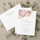 Menu de Casamento Floral Floral de Cor de Água Elegante. Apresenta texto cor-de-água cor-de-rosa cor-de-rosa floral e dourado em design de tipografia elegante com realces de escritura em branco. Personalize com seus detalhes de recepção de casamento. Convidamo-lo a visitar a nossa loja Zazzle, Austen & Grace, para combinar produtos e muito mais. Entre em contato conosco se precisar de assistência.